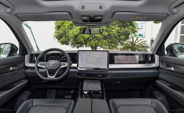 拉开车门坐进去,能立刻感觉到这一代揽巡在努力摆脱以往大众车系内饰相对保守的印象。最显眼的变化来自屏幕,中控台被一块15英寸的悬浮式大屏占据,分辨率达到了2K级别,显示效果比较细腻。副驾驶前方增加了一块11.6英寸的娱乐屏,这是老款车型上没有的配置,对于副驾乘客在长途旅行中打发时间是个不错的补充。全液晶仪表的尺寸是10.25英寸,界面设计清晰易读。比较让人有好感的是,大众并没有因为有了大屏就彻底取消物理按键,方向盘上的多功能按键和空调控制区的一些常用功能键都得以保留,这在驾驶过程中进行盲操要方便不少。另一个显著变化是换挡机构改成了怀挡,这让中控台下方腾出了一个相当可观的储物空间,并排布置了两个手机无线充电面板和杯架,实用性提升明显。内饰的用料方面,中控台和门板手能触及的地方,大多用了软性材质包裹,配合一些IMD透光饰条和30色的氛围灯,夜晚的车内氛围营造得比较到位。